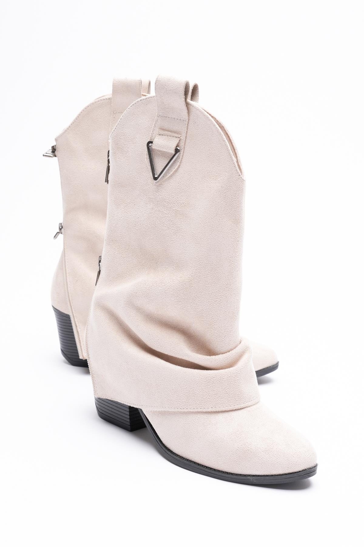 Maloria Bej Süet Kalın Topuklu Uzun Bot Stok Kodu:52-01-BTKV10-BJS