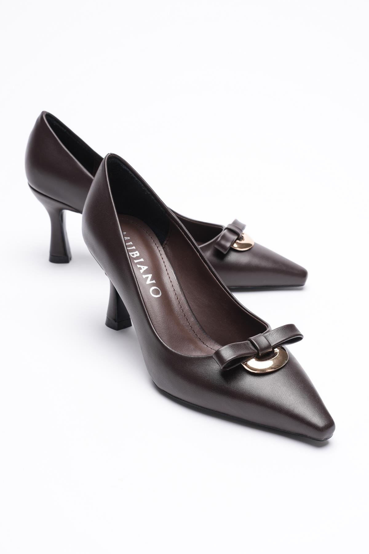 Arlina Deri Fiyonklu Gold Aksesuarlı Topuklu Ayakkabı Stok Kodu:52-05-8430-KHD