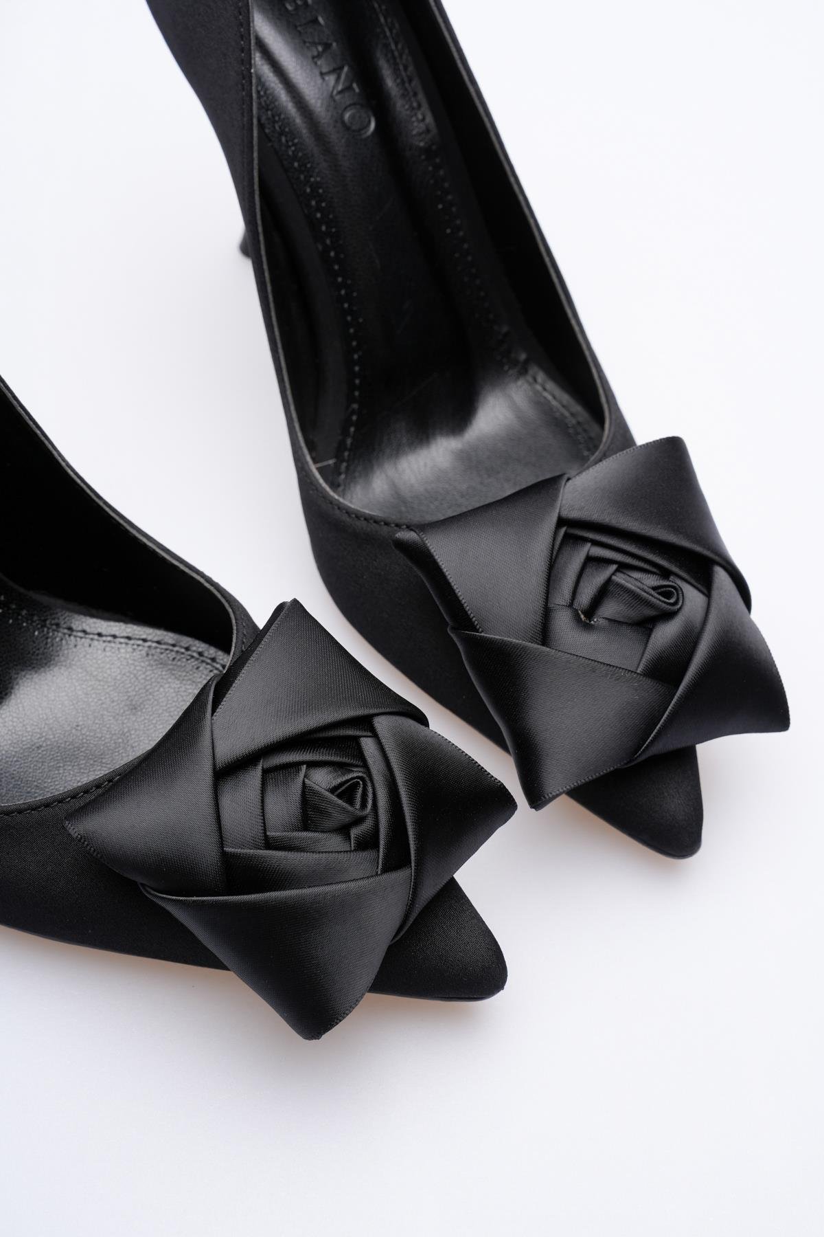Roselle Siyah Nubuk Saten Fiyonklu Yüksek Topuklu Ayakkabı Stok Kodu:52-09-958-SN