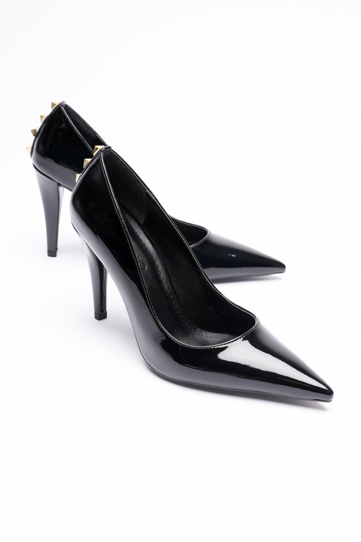 Stella Rugan Deri Sivri Burunlu Gold Aksesuarlı Yüksek Topuklu Ayakkabı Stok Kodu:52-08-9673-SR