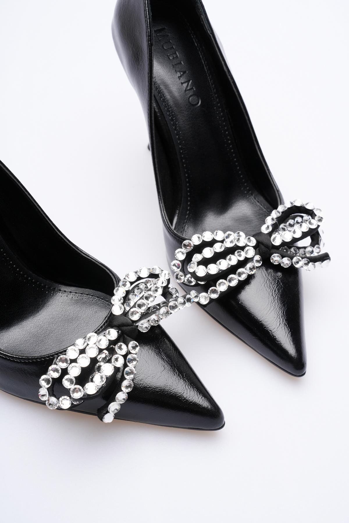 Cielle Siyah Rugan Taşlı Fiyonklu Yüksek Topuklu Ayakkabı Stok Kodu:52-09-955-SR