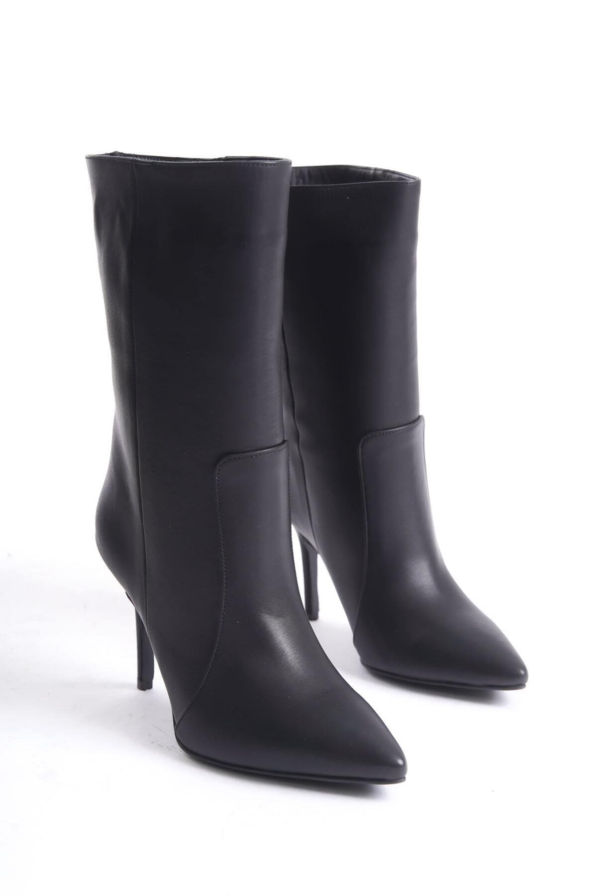 Mubiano Collection Kadın Sivri Burun Topuklu Deri Bot Siyah - MCALM23154 -