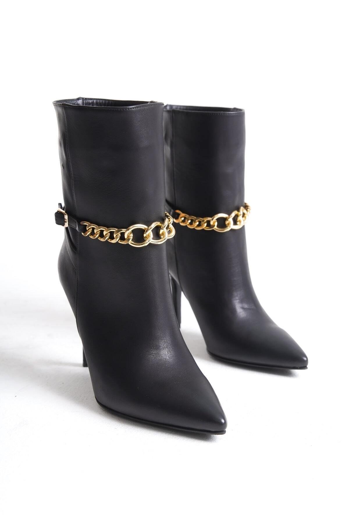 Mubiano Collection Kadın Zincir Detaylı Topuklu Deri Bot Siyah - MCALM23142 -