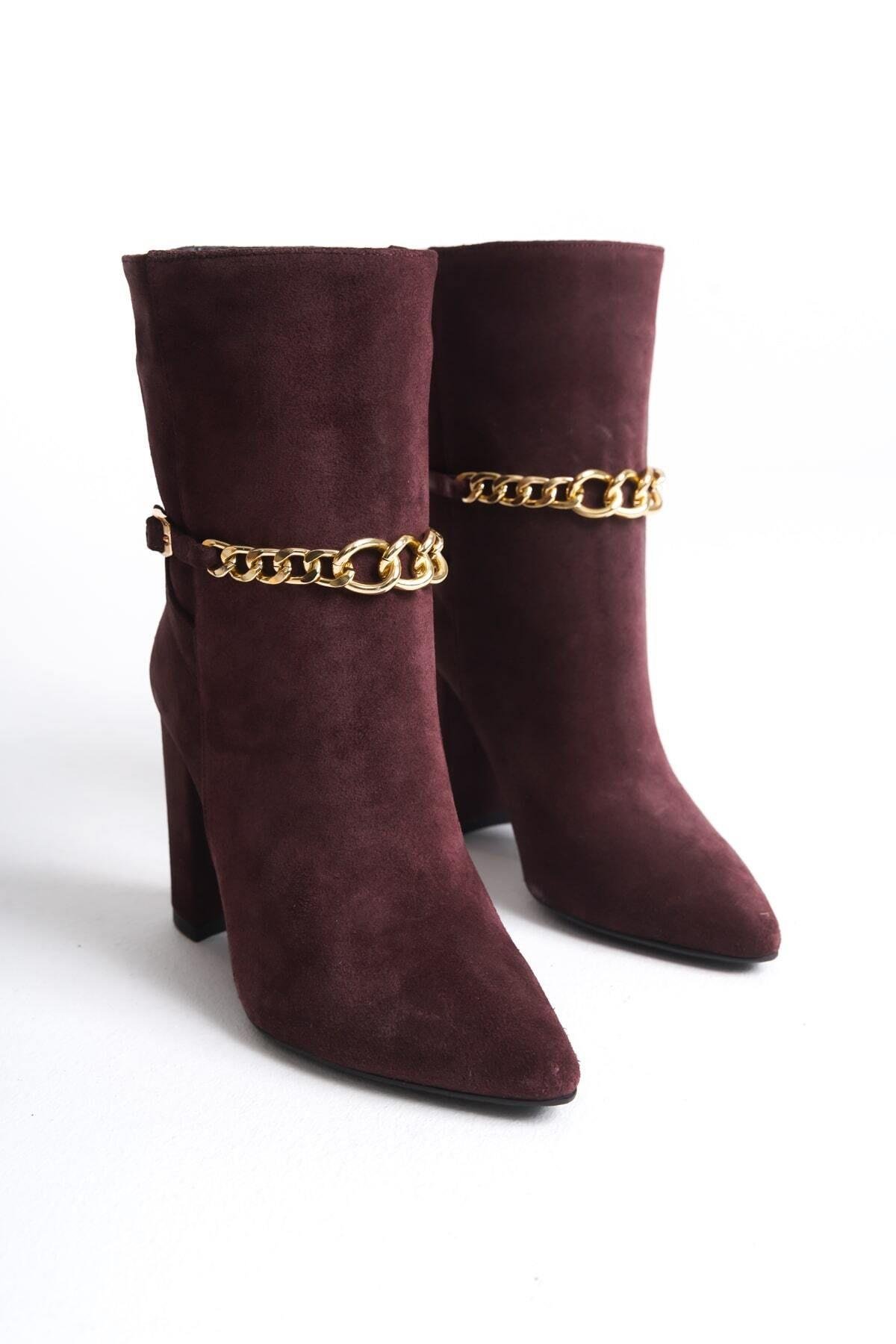 Mubiano Collection Kadın Zincir Detaylı Topuklu Süet Bot Bordo - MCALM23142 -