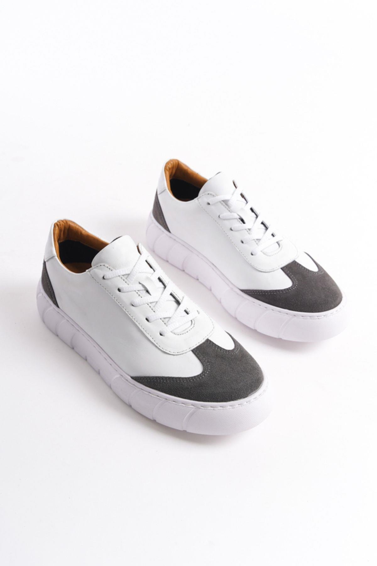 Mubiano Hakiki Deri Erkek Spor Ayakkabı & Sneaker Gri/Beyaz -MBKRY506-GRB