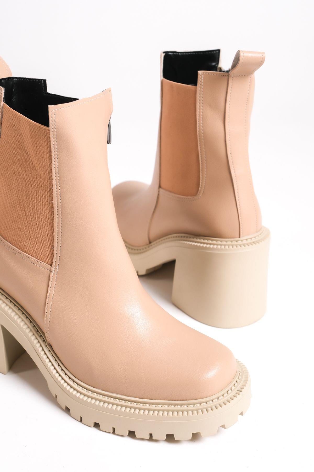 Mubiano MB7575-N Nude Kalın Taban Platformlu Kalın Topuklu Elastik Yan Bantlı Kadın Kısa Bot & Bootie
