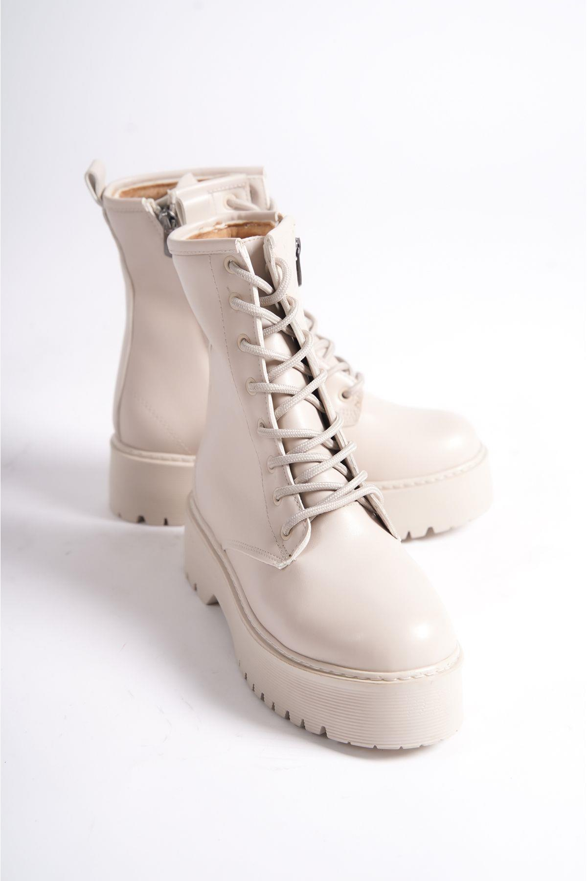 Mubiano MBHJ550-BJ Kalın Yüksek Taban İçi Kürklü Bağcıklı Kadın Bot & Postal