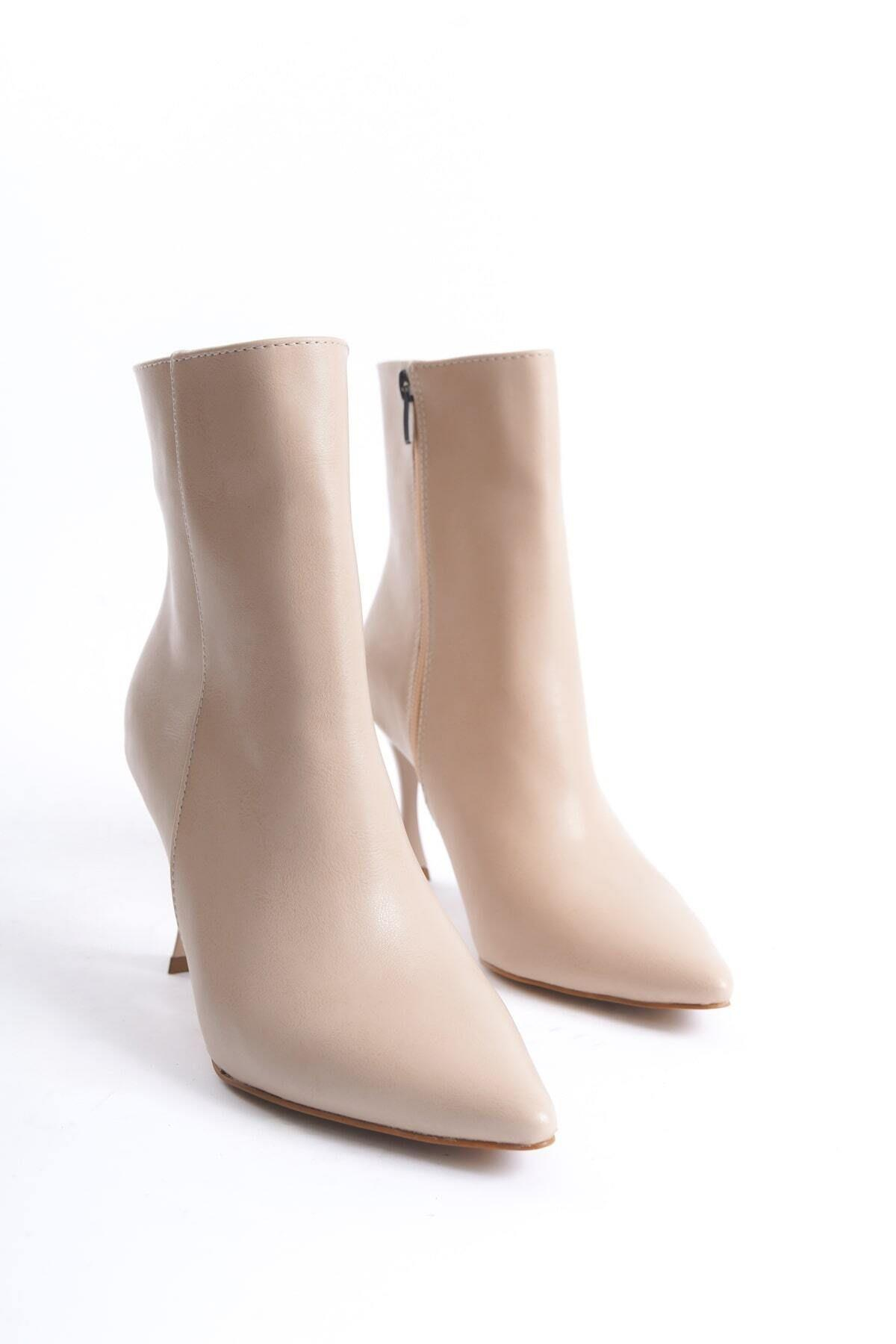 Mubiano MBHRND801N-Kadın İnce Topuklu Sivri Burun Nude Kısa Bot & Bootie