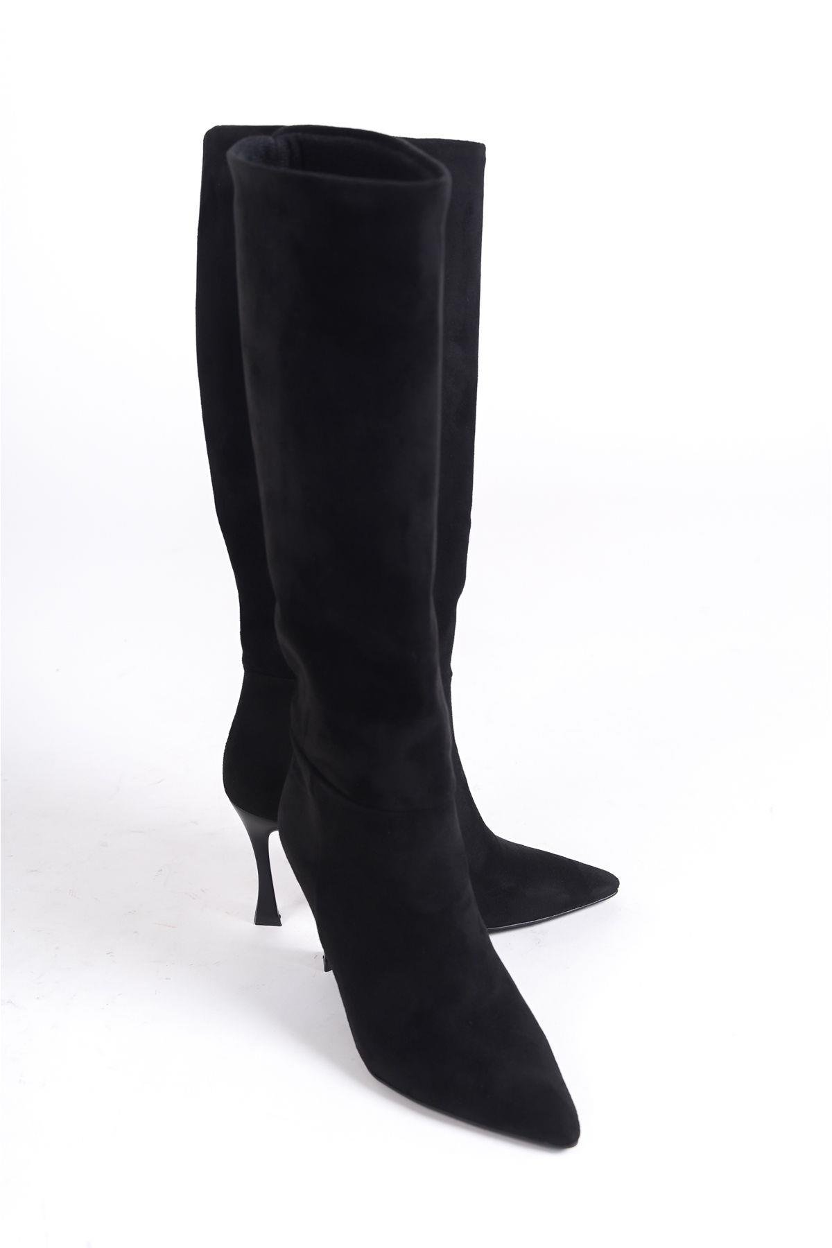 Mubiano MBHRNS1818-S Kadın Süet İnce 9 cm Topuklu Sivri Burun Siyah Uzun Çizme