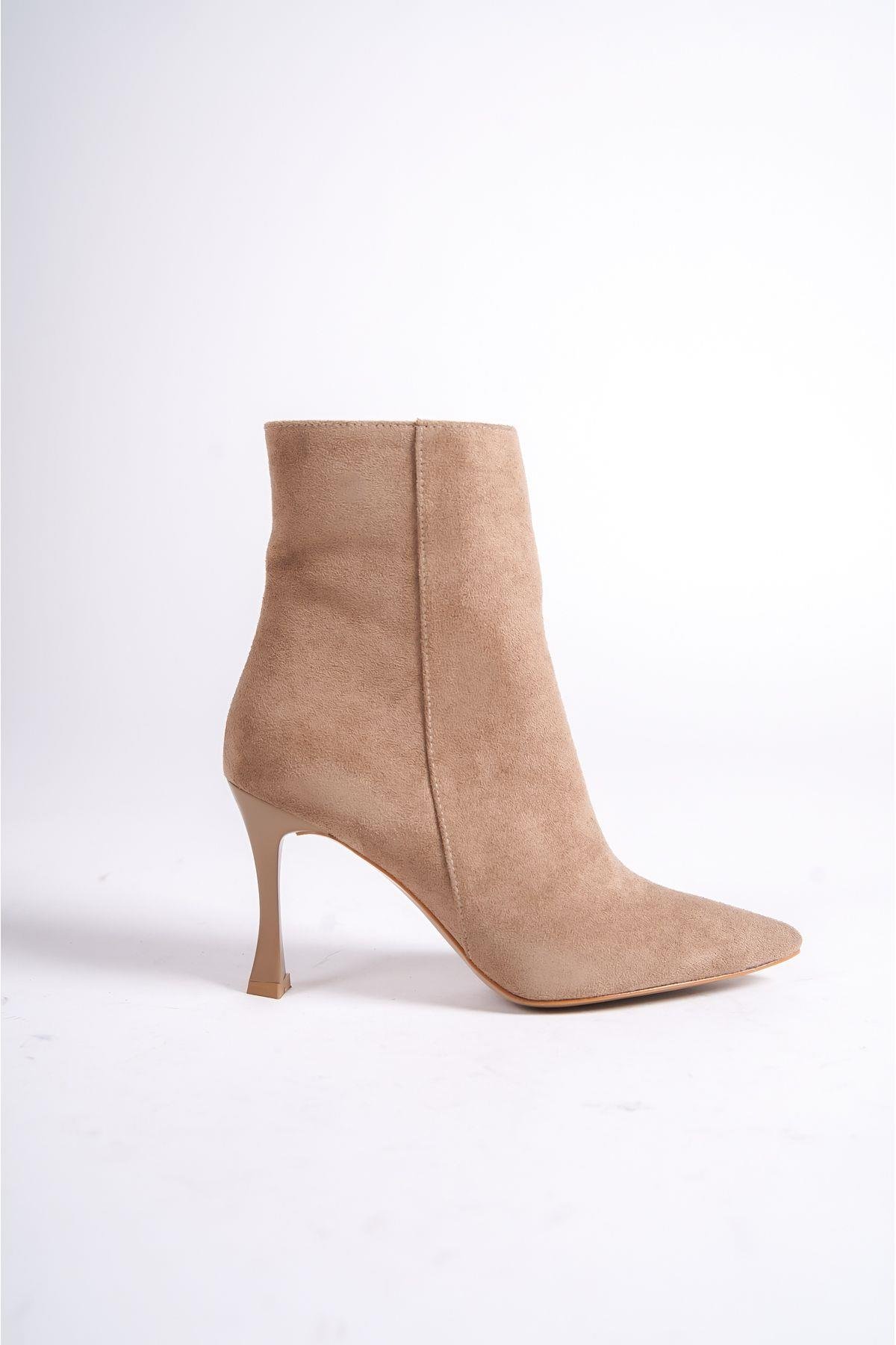 Mubiano MBHRNS800-VZ Kadın ince Topuklu Süet Vizon Kısa Sivri Burun Bot & Bootie