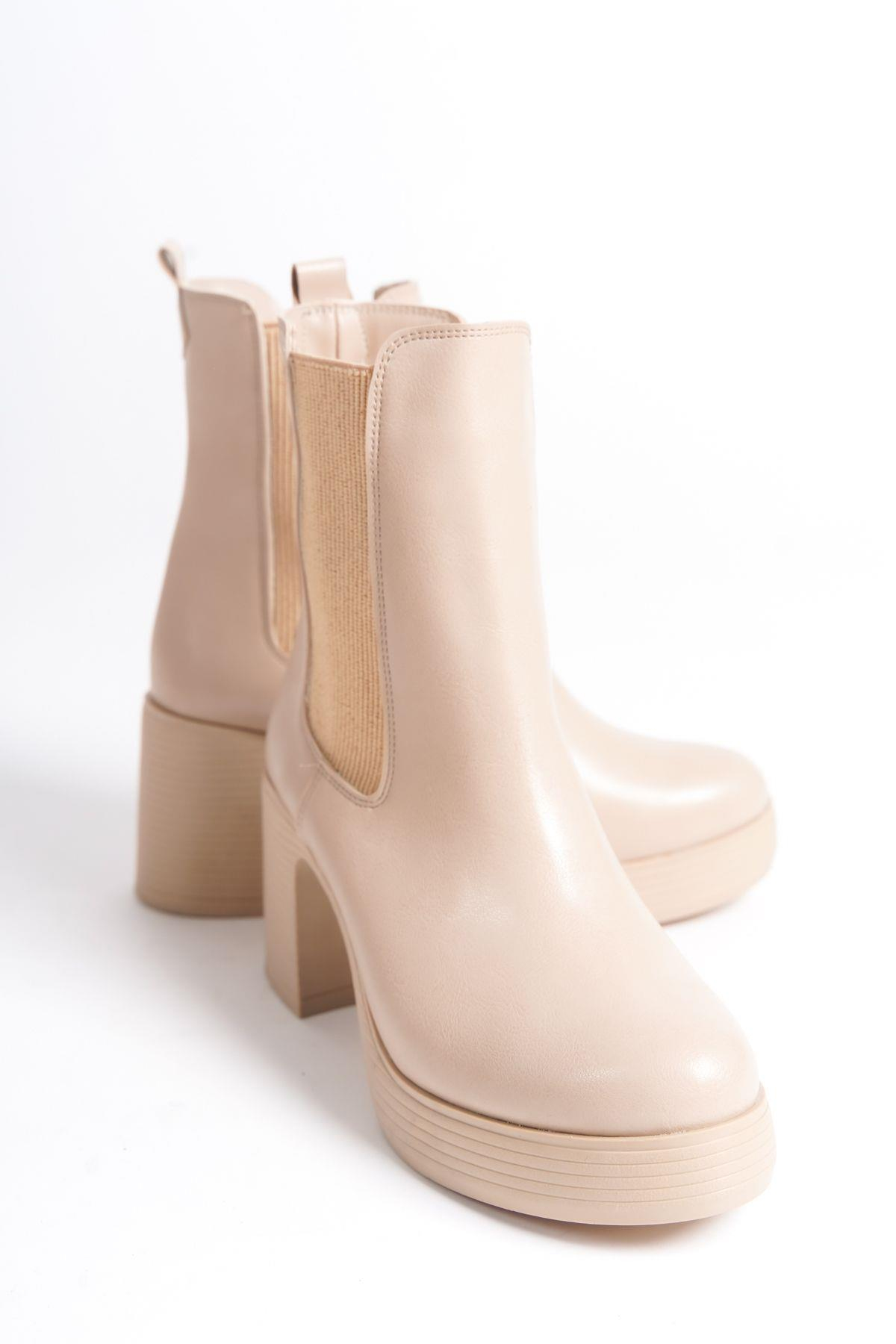 Mubiano MBIBR203-N Kadın Nude Kalın Kısa Platform Topuklu Kısa Bot & Bootie