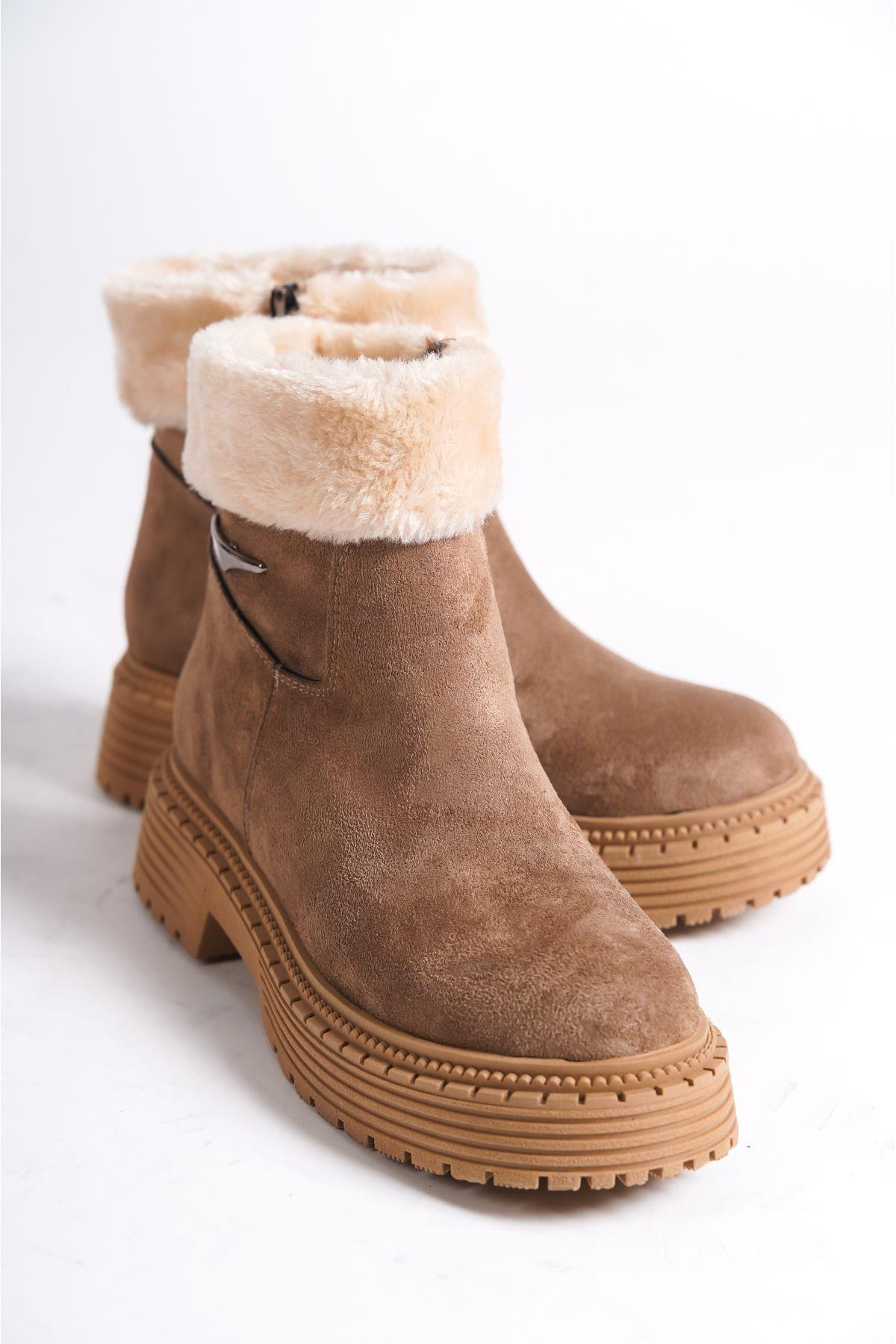 Mubiano MBIBR205 Kadın Süet Yakası Kürklü Kalın Thermo Taban Kısa Bot & Bootie