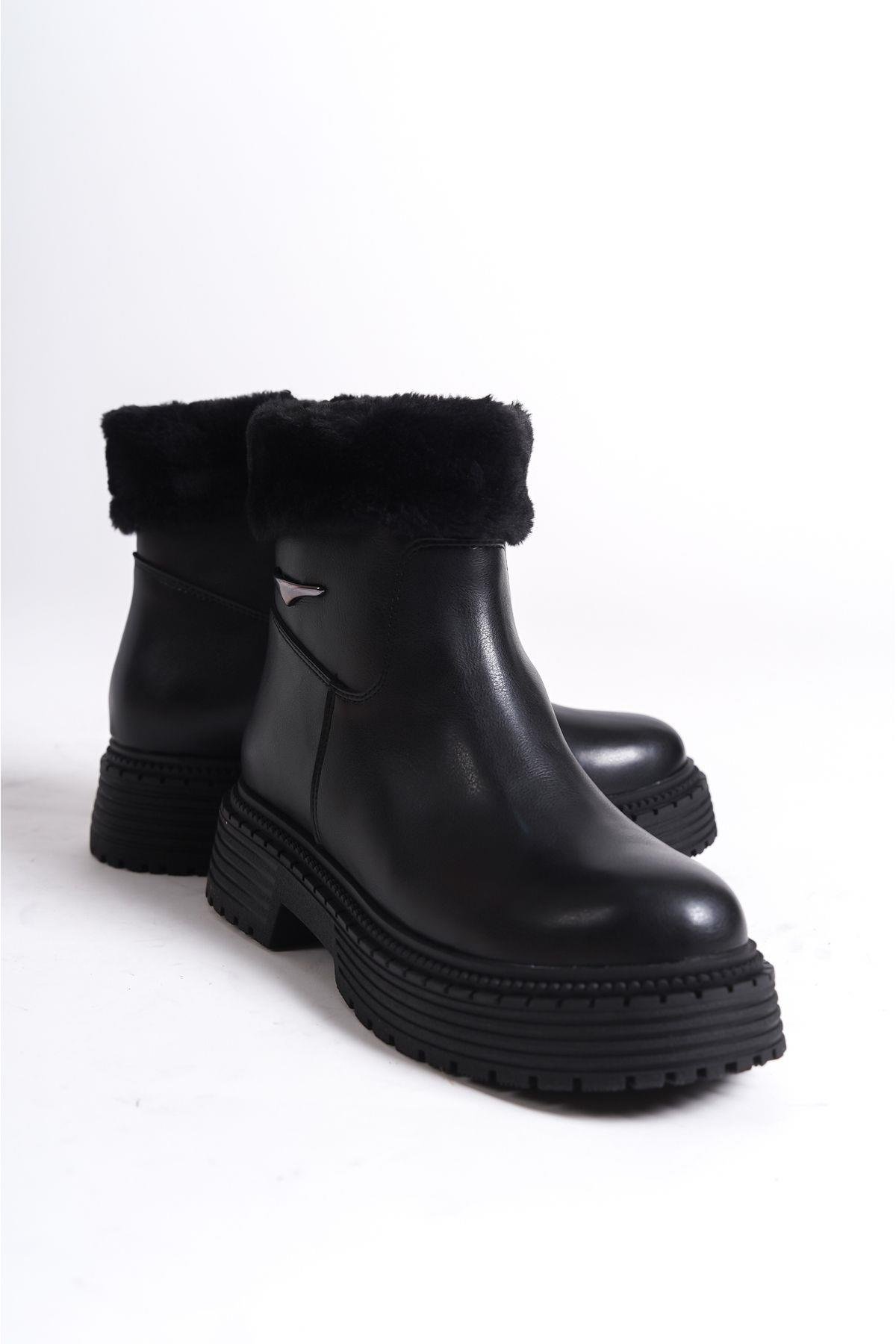 Mubiano MBIBR206-S Kadın Siyah Yakası Kürklü Kalın Thermo Taban Kısa Bot & Bootie
