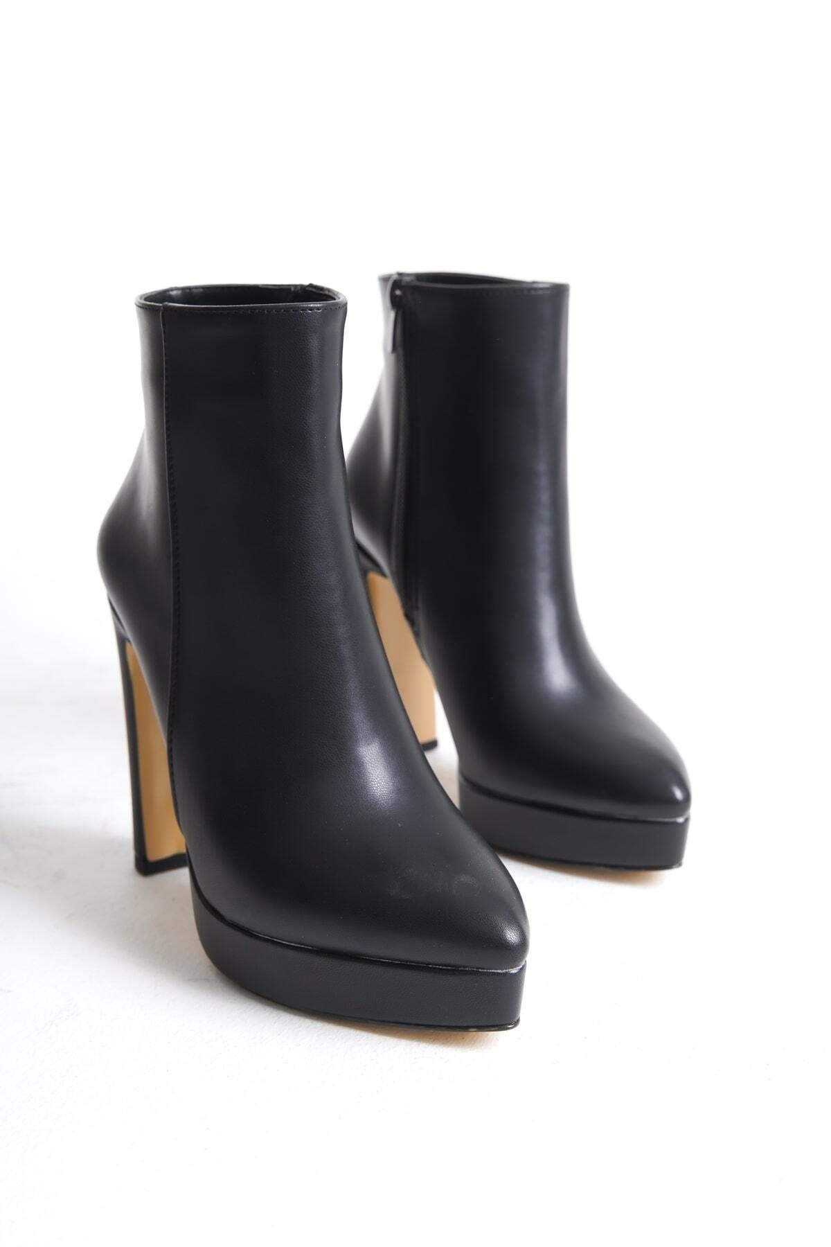 Mubiano MBSR603-S Kadın Kalın Topuklu Siyah Oval Burun Kısa Bot & Bootie