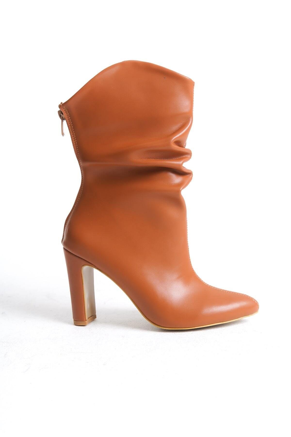 Mubiano MBSR606-TB Kadın Sivri Burun Körüklü Taba Topuklu Bot & Bootie