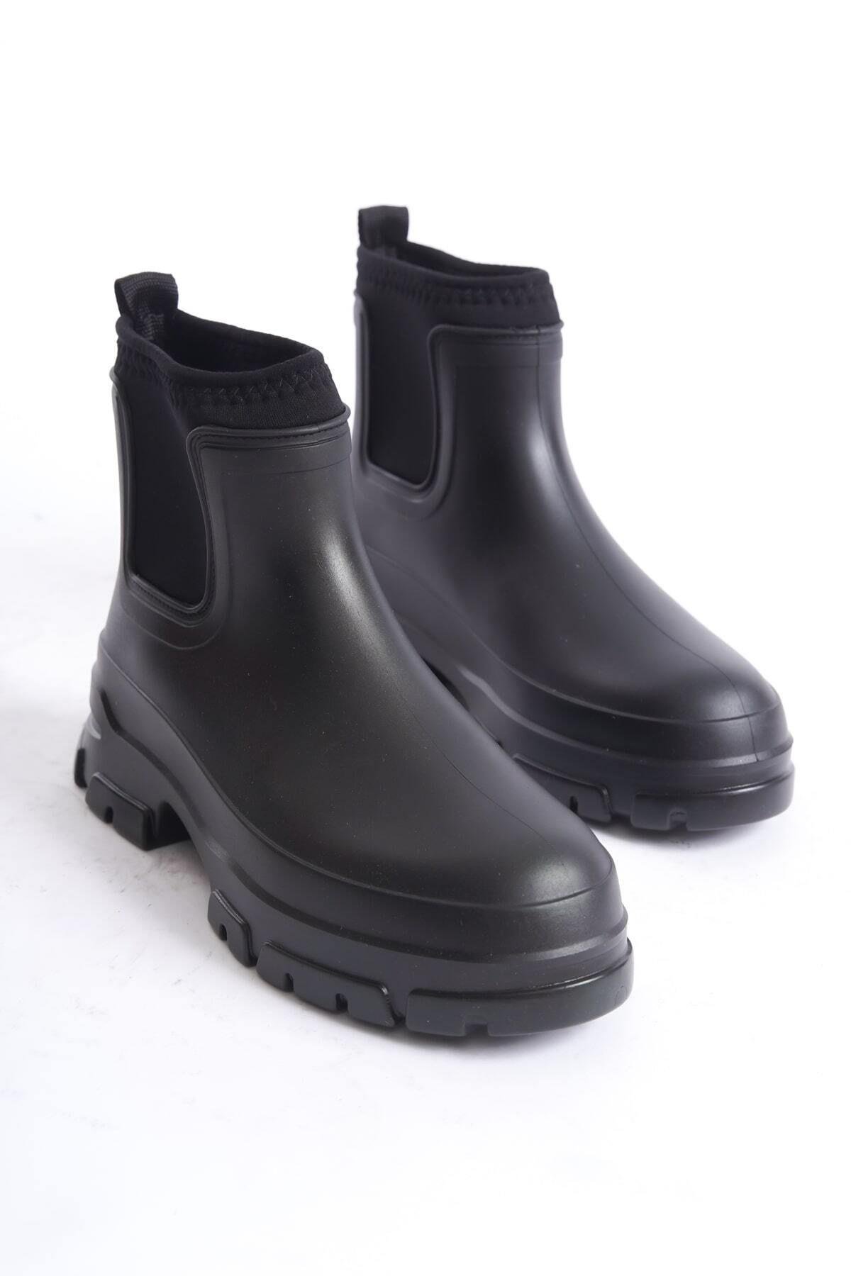 Mubiano MBTB2026-S Kadın Yanları Elastik Siyah Kısa Yağmur Botu