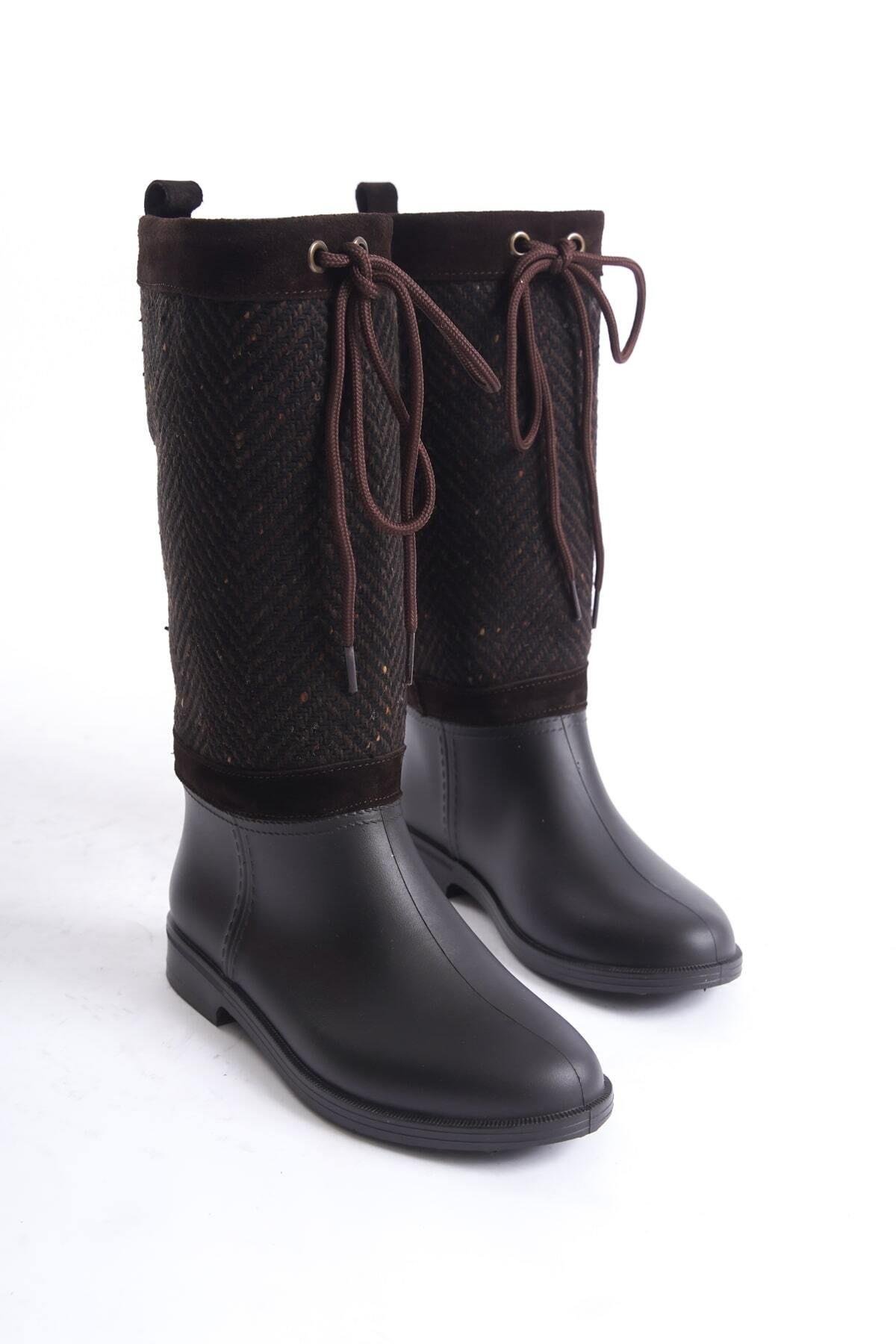 Mubiano MBTB2029-KH Kadın Bağcık Detaylı Kahverengi Yağmur Çizmesi