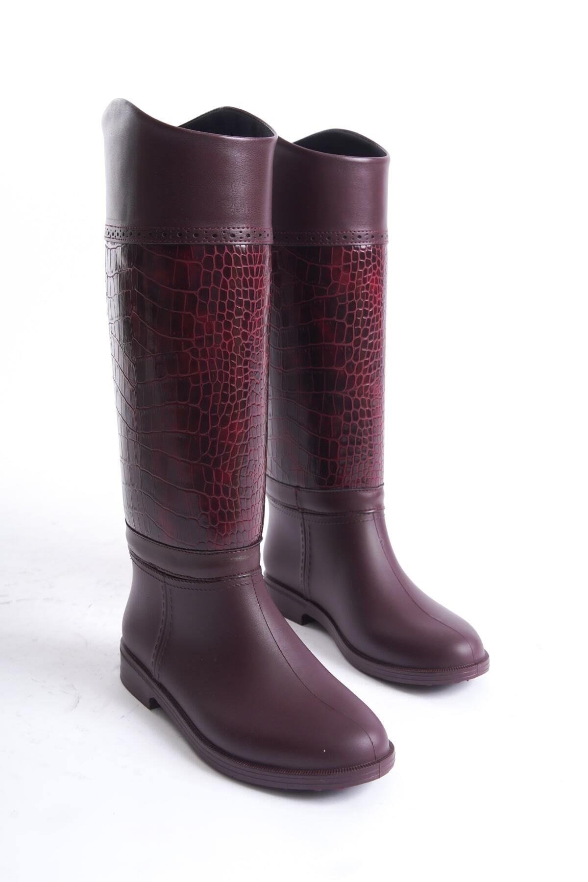 Mubiano MBTB2033-BRD Kadın Krokodil Desenli Bordo Yağmur Çizmesi