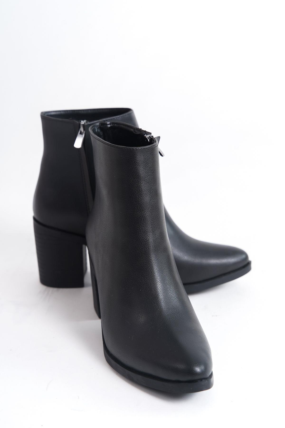 Mubiano MBVCT4000 Kadın Sivri Burun Kısa Kalın Topuklu Fermuarlı Bot & Bootie