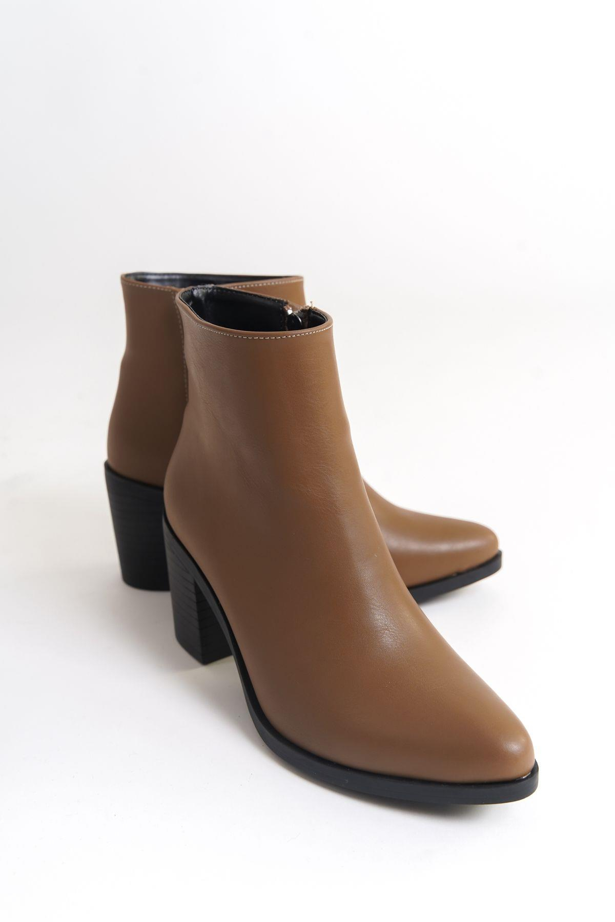 Mubiano MBVCT4000 Kadın Sivri Burun Kısa Kalın Topuklu Fermuarlı Bot & Bootie
