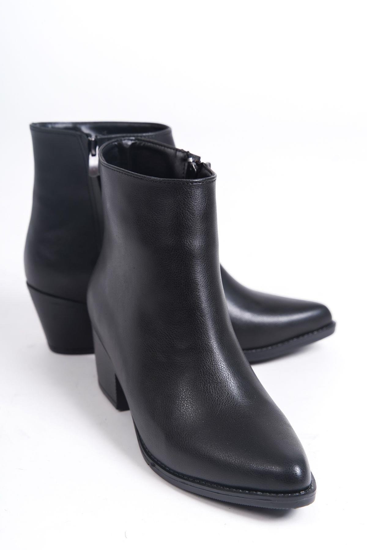 Mubiano MBVCT5005-S Kadın Siyah Sivri Burun Kısa Kalın Topuklu Fermuarlı Bot & Bootie