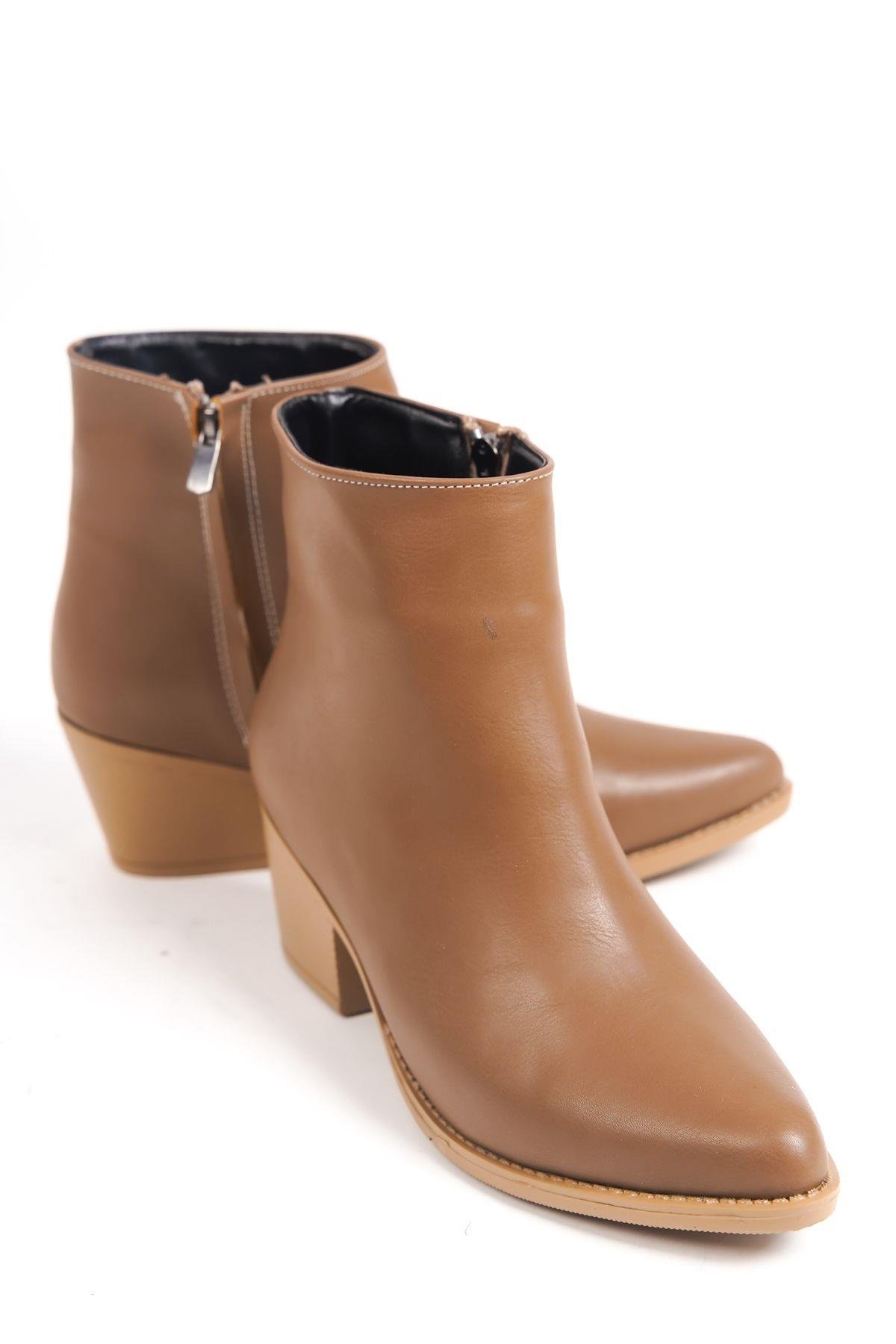 Mubiano MBVCT5005 Kadın Sivri Burun Kısa Kalın Topuklu Fermuarlı Bot & Bootie