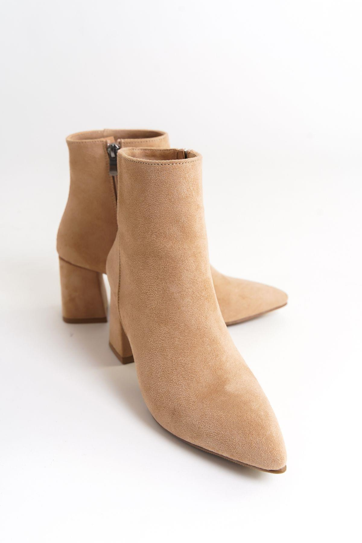 Mubiano MBZFR5006S-VZ Kadın Vizon Süet Kalın Topuklu Sivri Burun Fermuarlı Kısa Bot &Bootie