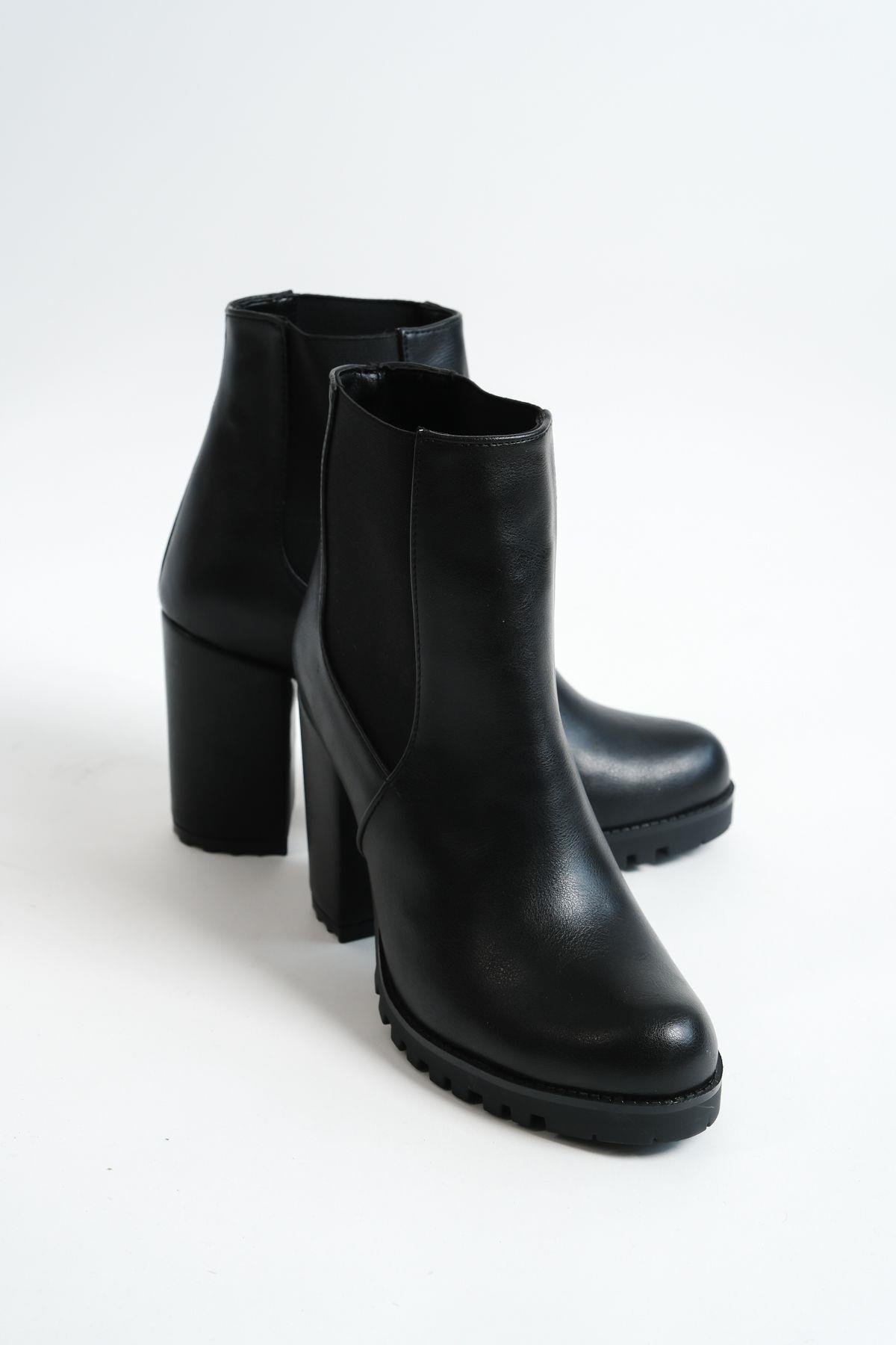 Mubiano MBZFR5010D-S Kadın Siyah Kalın Topuklu Yanları Lastikli Kısa Bot&Bootie
