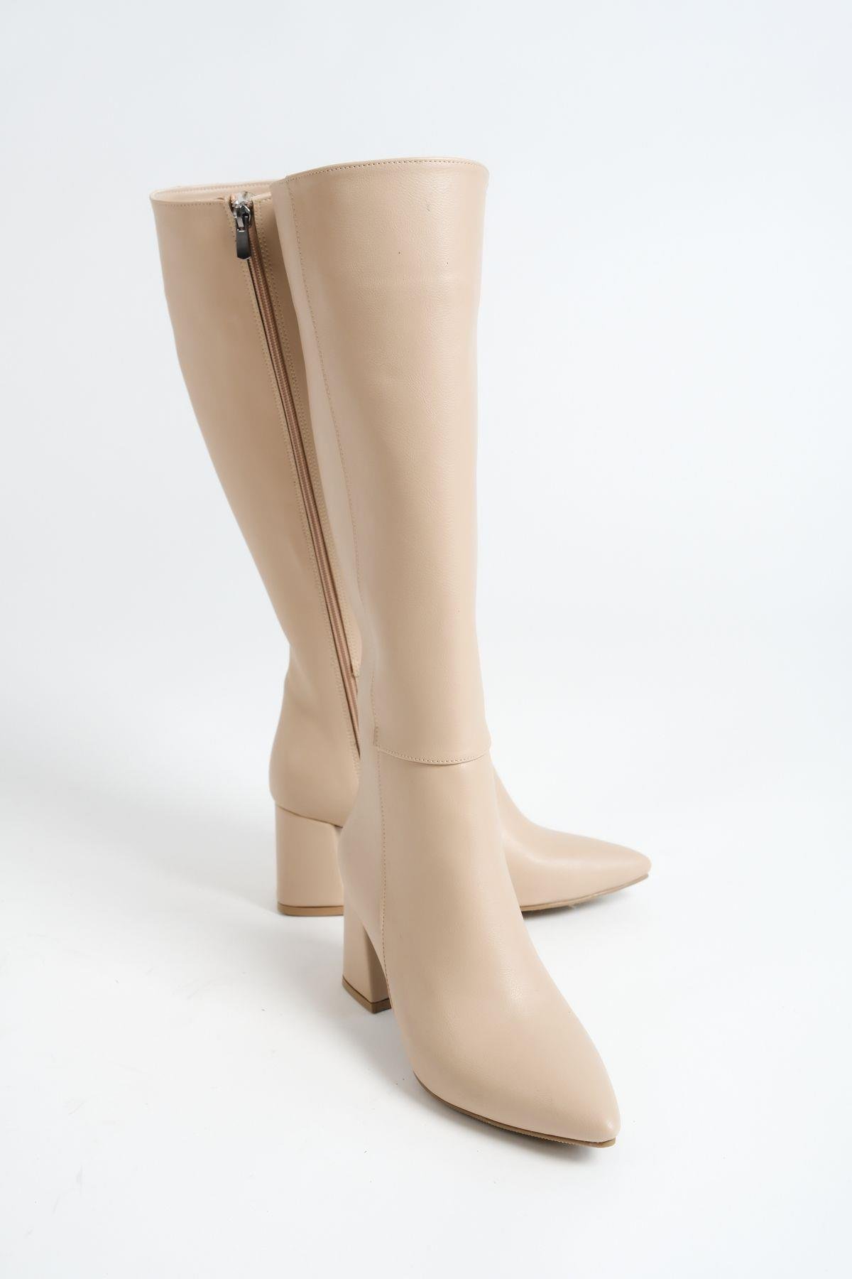 Mubiano MBZFR5012D-N Kadın Nude Fermuarlı Sivri Burun 6 Cm Blok topuklu Uzun Çizme