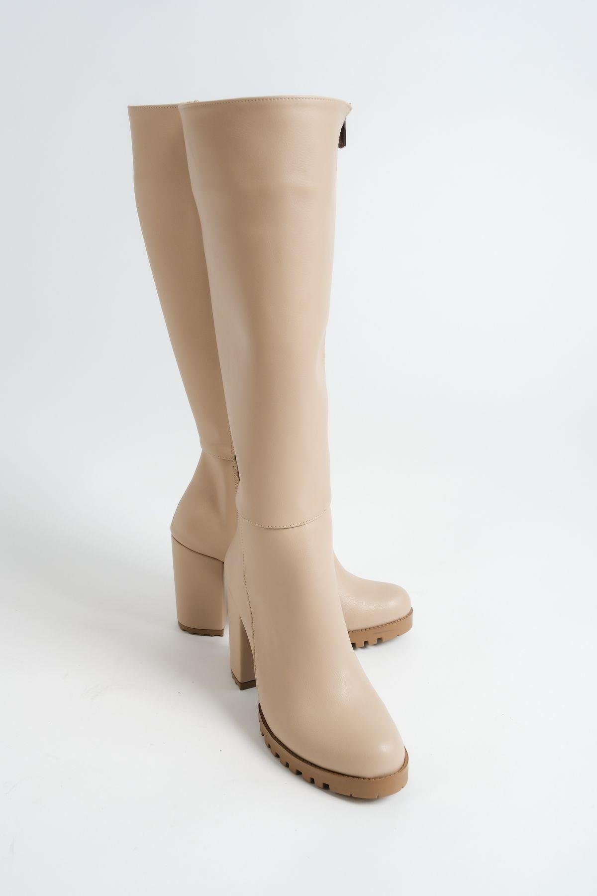 Mubiano MBZFR5013D-N Kadın Nude Kalın Topuklu Fermuarlı Uzun Çizme