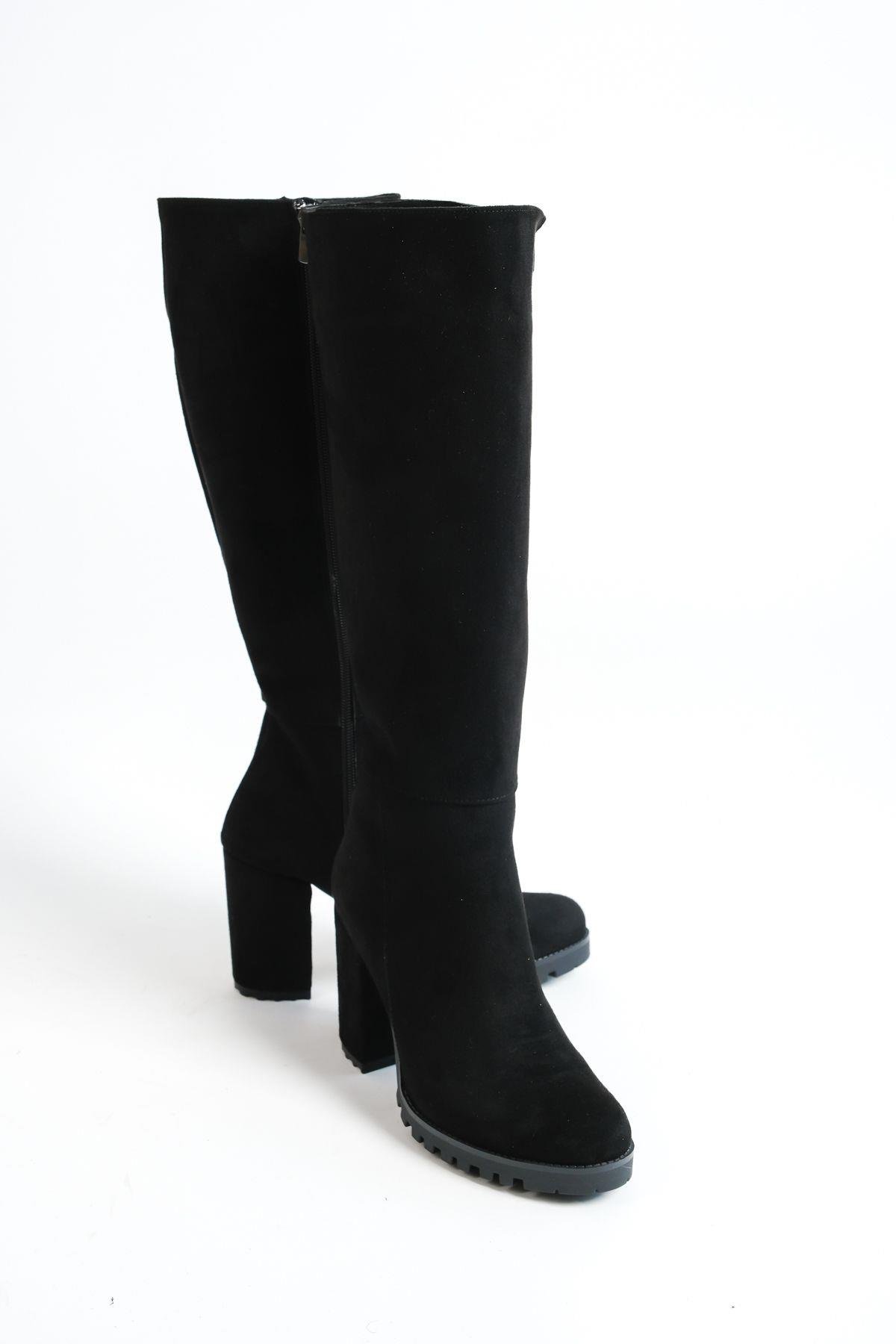 Mubiano MBZFR5013S-S Kadın Siyah Süet Kalın Topuklu Fermuarlı Uzun Çizme