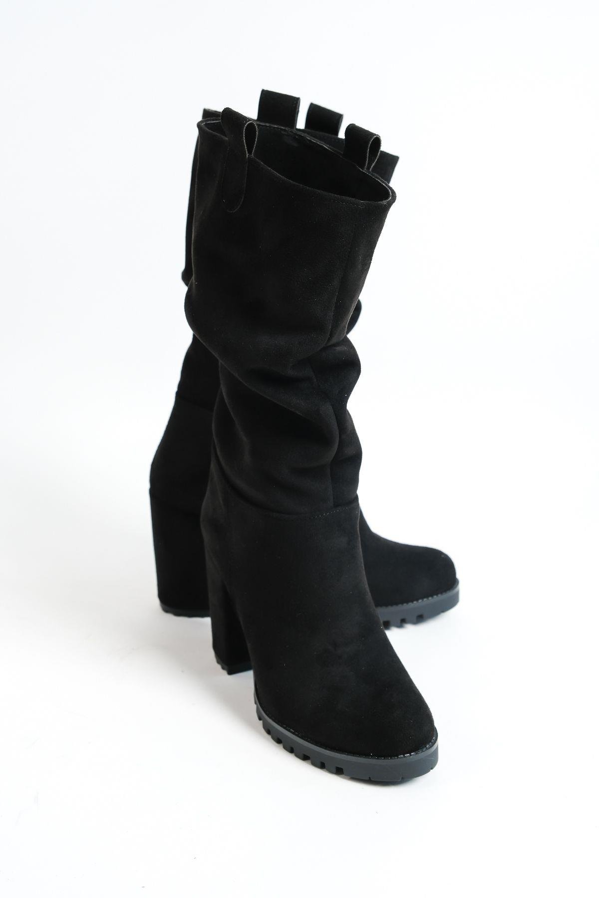 Mubiano MBZFR5014S-S Kadın Siyah Süet Kalın Topuklu Körüklü Çizme