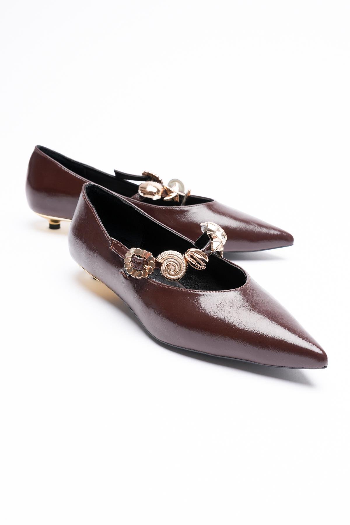 Siena Kahve Gold Alçak Topuklu Ayakkabı Stok Kodu:52-07-3313-KHRK