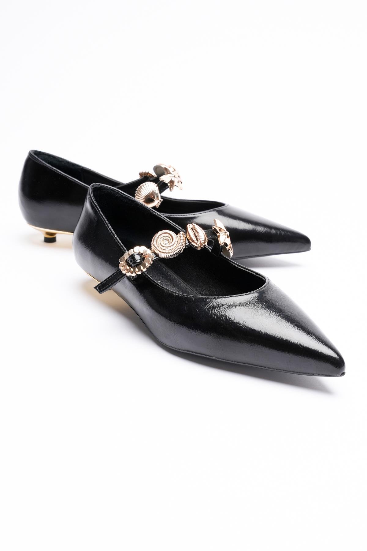 Siena Siyah Gold Alçak Topuklu Ayakkabı Stok Kodu:52-07-3313-SKR